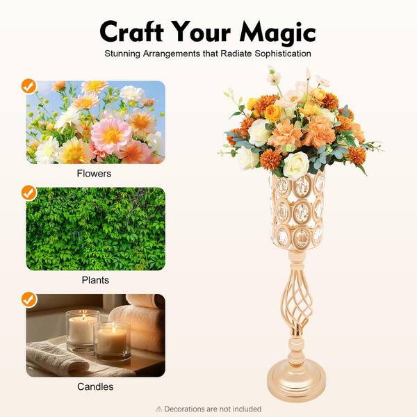 24 in. H Gold Metal Iron Crystal Decor Vases Wedding Party Table Decoration Vases (Set of 10)