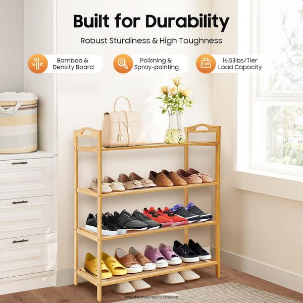 26.38 in. H 12-Pair Wood Color Bamboo Shoe Rack 4-Layer