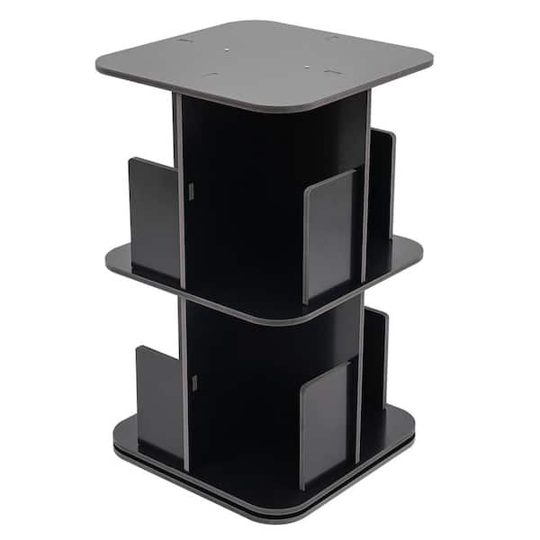 26 in. Tall Black PVC Plastic 2-Shelf 360° Rotating Small Bookshelf Free Standing Bookcase