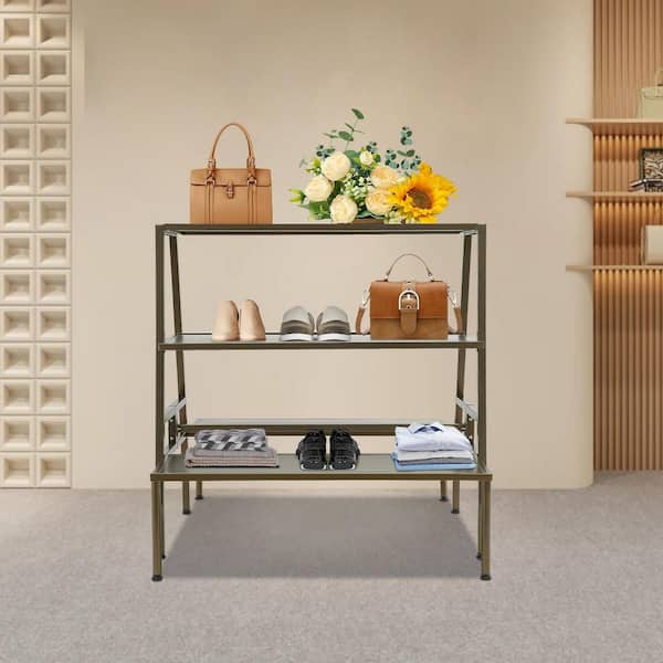 39 in. x 41 in. Olive-Green Metal Carbon Steel Rectangular Decorative Stand 3-Tier Multi-Functional Display Rack