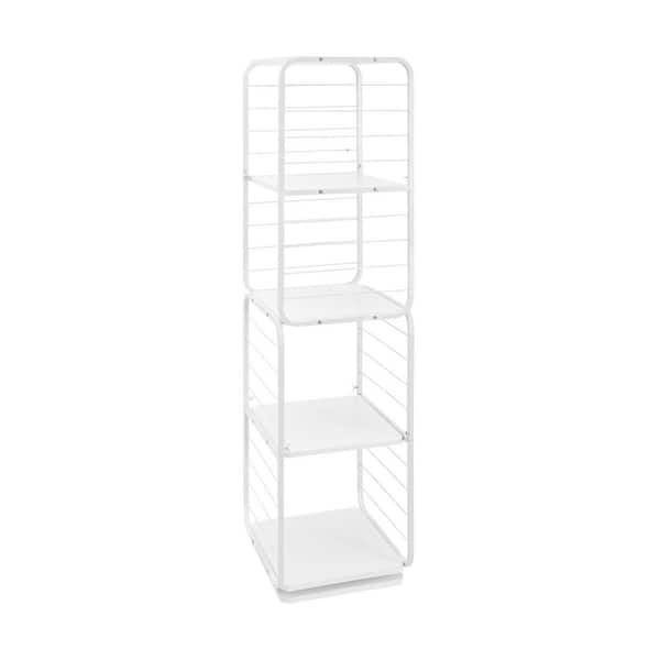 White 62 in. Tall 4-Shelf Metal Iron Bookcase Modern Free Standing 360° Rotating Bookshelf