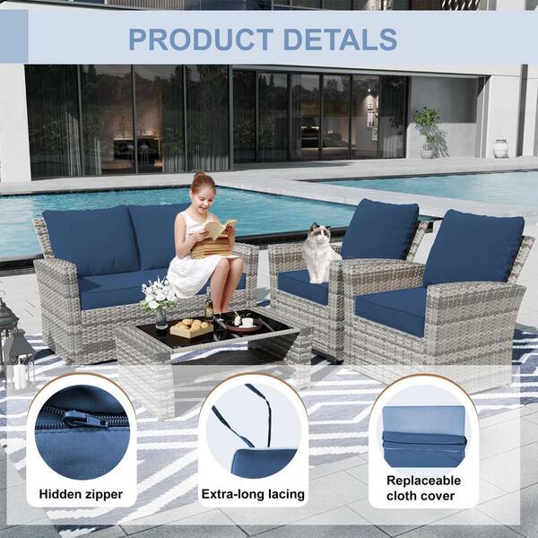 24 in x 24 in x 4.3 in 4-PC Deep Seating Outdoor Lounge Chair Cushion, Weather-Proof, Fade Resistant Patio Cushion, Blue