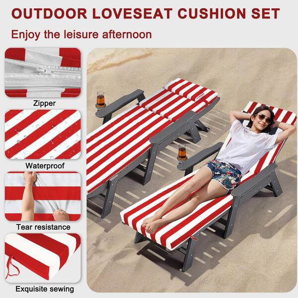 71 in. x 21 in. x 4 in. (1-Pack) Waterproof Outdoor Chaise Lounge Cushion with a Bath Towel Red and White Stripes