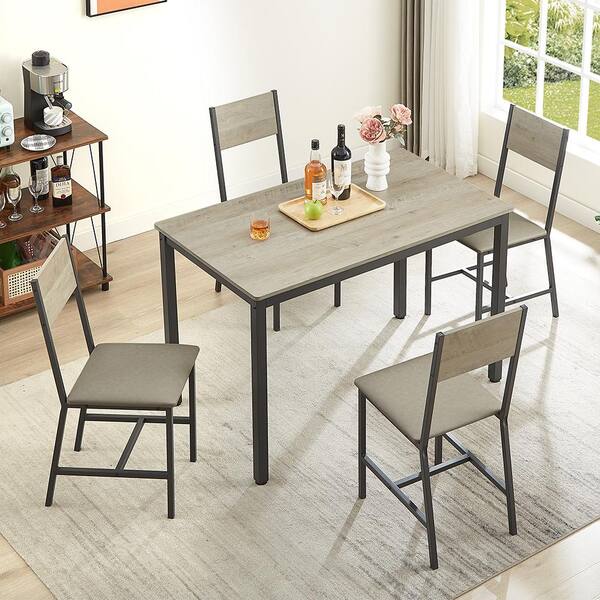 5-Piece Industrial Gray Wood Top Dining Table Set w/Upholstered Seats and Backrest Small Space Kitchen Table Set Seats 4