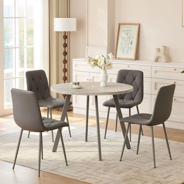 5-Piece Round Gray Faux Marble Wood Top Dining Table Set Seats 4 with Foldable Table and Ergonomic, Wider, Deeper Chair