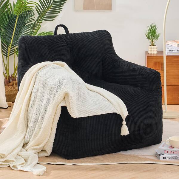 Black Corduroy Polyester Living Room Bean Bag Chair Lazy Chair Single Sofa with High-Density Memory Foam and Armrest
