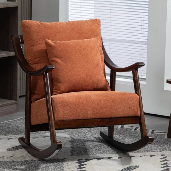 Light Brown Fabric Modern Glider Rocking Chair, Living Room Accent Chair Armchair with Waist Cushion & Solid Wood Frame