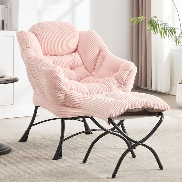 Pink Modern Flannelette Fabric Upholstered Living Room Accent Arm Chair with Ottoman, Lazy Chair with Armrests