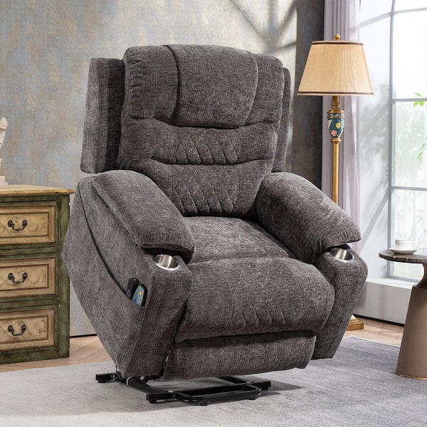 Upgraded Flagship Oversized Gray Chenille Power Lift Recliner Chair with Extended Footrest and Armrest Storage