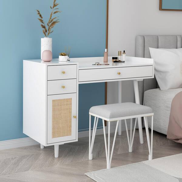 White Makeup Desk with 3-Drawer and 1-Door Vanity Table 41.73 in. x 19.09 in. x 31.89 in.