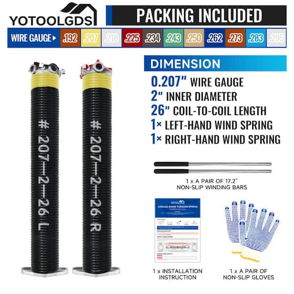 0.207 in. Wire x 2 in. x 26 in. L Electrophoresis Garage Door Torsion Springs in Yellow Left and Right with Winding Bars