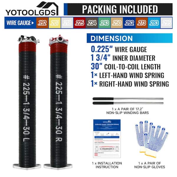 0.225 in. Wire x 1.75 in. x 30 in. Electrophoresis Garage Door Torsion Springs in Red Left and Right with Winding Bars