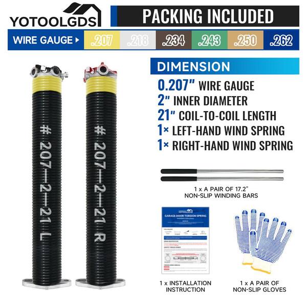 207 in. Wire x 2 in. x 21 in. L Electrophoresis Garage Door Torsion Springs in Yellow Left and Right with Winding Bars