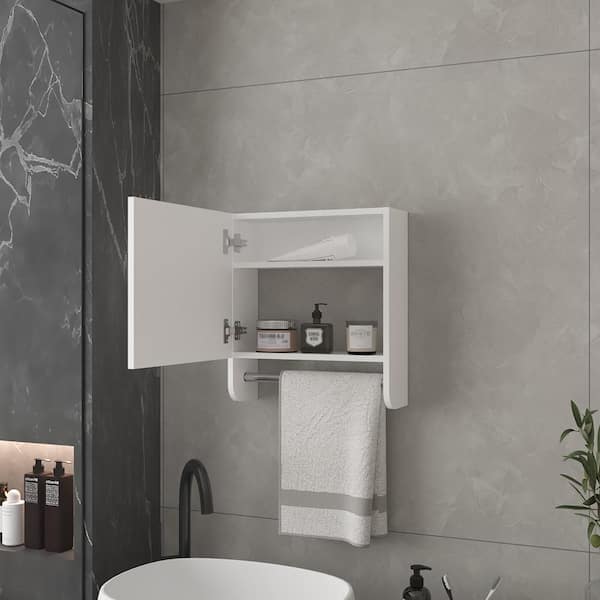 17.7 in. W x 19.7 in. H Rectangular White MDF Surface Mount Medicine Cabinet with Mirror, with Towel Holder