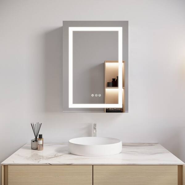 20 in. W x 26 in. H Rectangular LED Silver Surface Mount Medicine Cabinet with Mirror, Anti-Fog