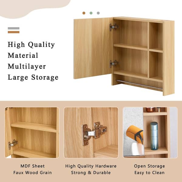 21.6 in. W x 22 in. H Rectangular Burly Wood MDF Surface Mount Medicine Cabinet with Mirror, with Towels Bar