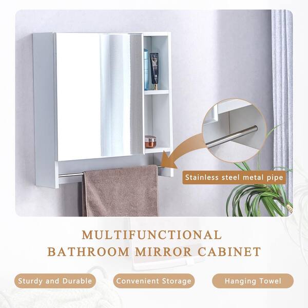 21.6 in. W x 22 in. H Rectangular White MDF Surface Mount Medicine Cabinet with Mirror, with Towels Bar