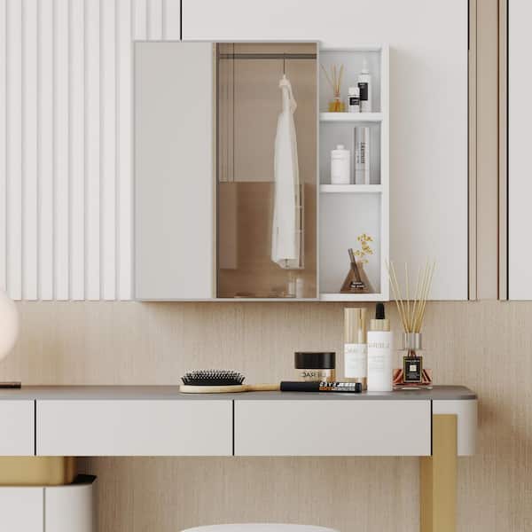 21.7 in. W x 22 in. H Rectangular White MDF Surface Mount Medicine Cabinet with Mirror, with 2-Shelves