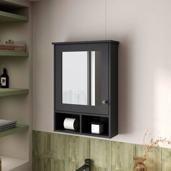 21 in. W x 29 in. H Rectangular Melamine Surface Mount Medicine Cabinet with Mirror in Black