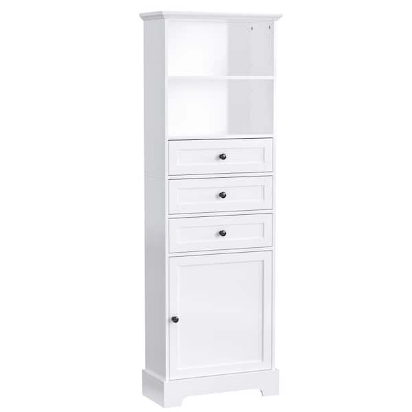 22 in. W x 10 in. D x 67 in. H Freestanding White Linen Cabinet with 3 Drawers and Adjustable Shelve