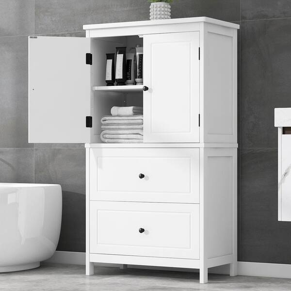 23.5 in. W x 12 in. D x 43 in. H White MDF Freestanding Linen Cabinet with 2-Doors and Drawers, Adjustable Shelf