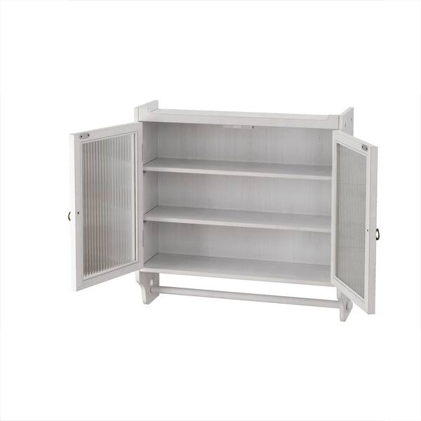 23.62 in. W x 23.62 in. H Rectangular White Solid Wood Surface Mount Medicine Cabinet without Mirror, with Towel Rack