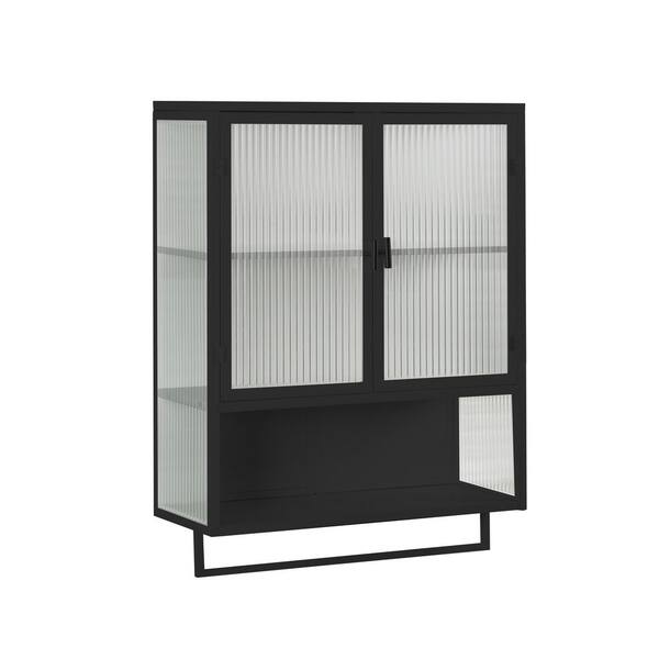 23.62 in. W x 27.56 in. H Rectangular Black Metal Surface Mount Medicine Cabinet without Mirror, with Towel Rack