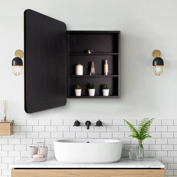 24 in. W x 30 in. H Rectangular Metal Medicine Cabinet with Mirror in Black