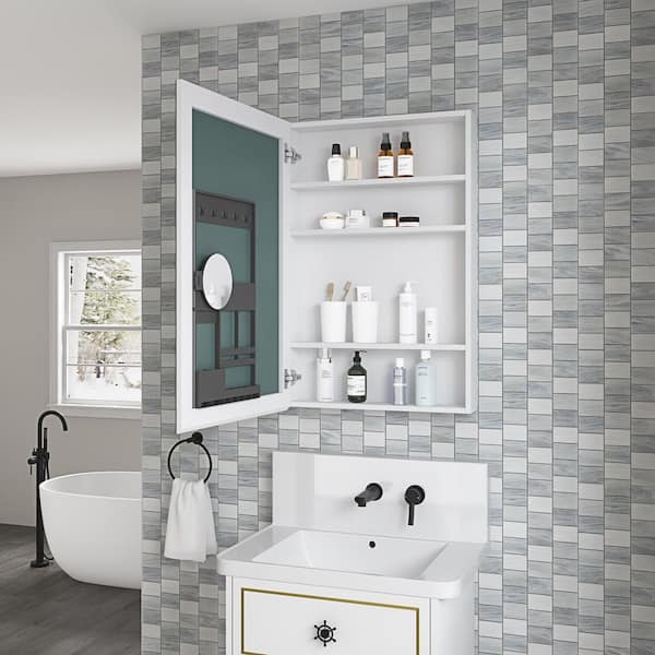 24 in. W x 36 in. H Rectangular White Surface Mount Medicine Cabinet with Mirror, with Left opening door