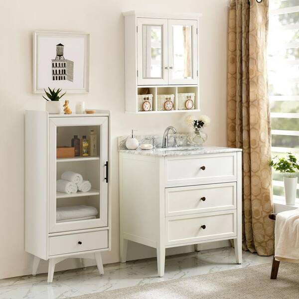 25 in. W x 30 in. H Rectangular White MDF Surface Mount Medicine Cabinet with Mirror, with Adjustable Shelf