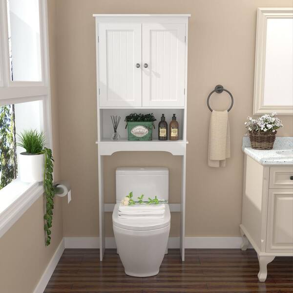 25 in. W x 9 in. D x 66 in. H White MDF Freestanding Linen Cabinet with Shelves