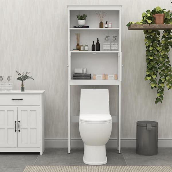 26 in. W x 70 in. H x 9 in. D White Over the Toilet Storage with 2-Barn Door and Storage Shelf