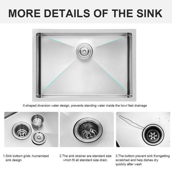 27 in. Undermount Single Bowl 16 Gauge Brushed Nickel Stainless Steel Kitchen Sink with Drain Assembly