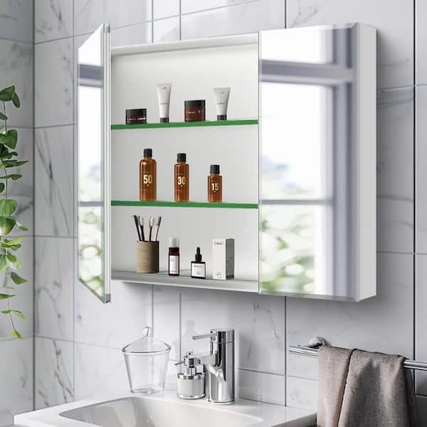 30 in. W x 26 in. H Rectangular Aluminium Surface Mount Medicine Cabinet with Mirror in Silver
