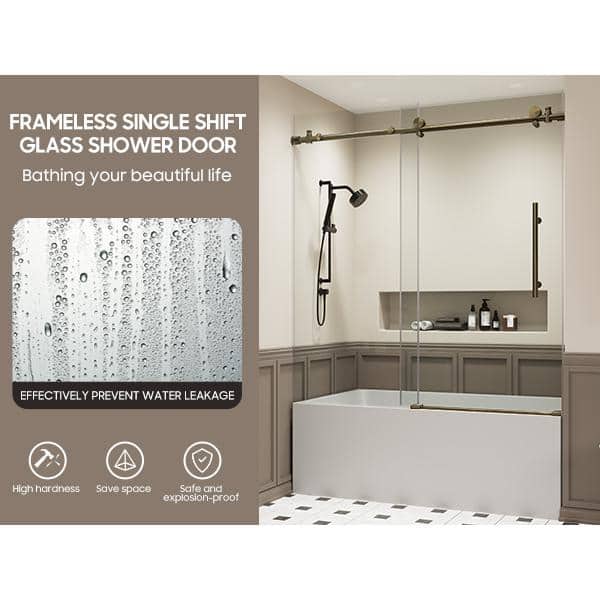 60 in. W x 60in. H Sliding Semi - Frameless Shower Door in Brushed Gold Finish with Clear Tempered Glass