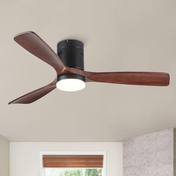 Farmhouse 52 in. Integrated LED Low Profile Solid Wood Black Ceiling Fan with Dimmable Light Kit and DC Motor