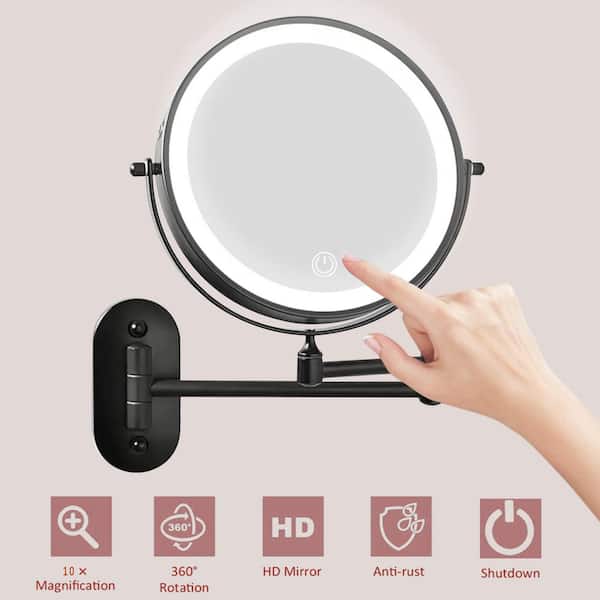 8 in. W x 8 in. H Round LED Magnifying Wall Bathroom Makeup Mirror Rechargeable Makeup Mirror in Black