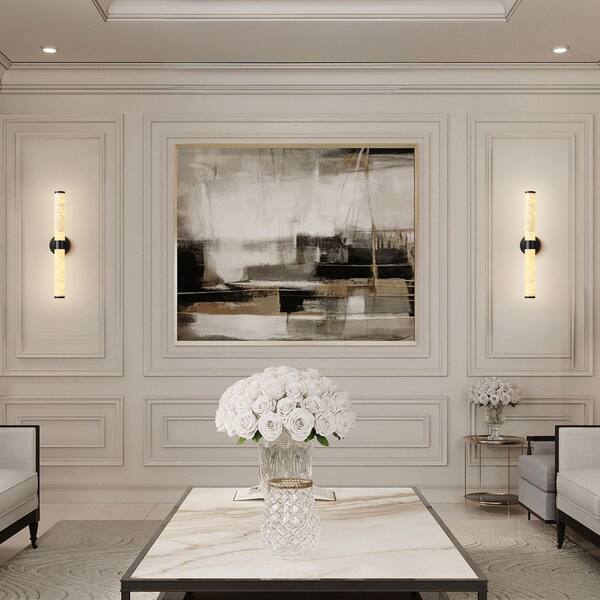 24 in. 1-Light Black LED Wall Sconce,Natural Alabaster Modern Wall Light for Bedroom, Bathroom, Living Room