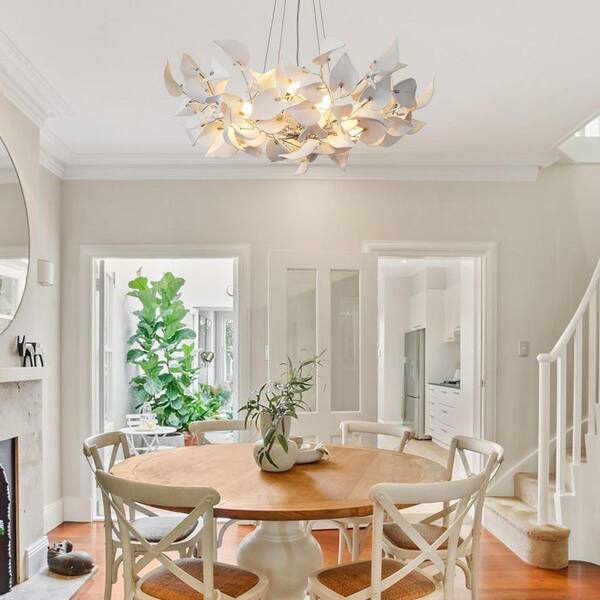 39" 8-Light Luxury Silver Round Chandelier, Modern Ceramic Leaf Branch Chandelier for Living Room, Dinning Room, Foyer
