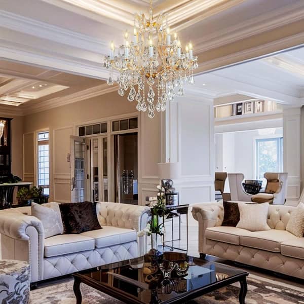 D30 in. 15-Light Modern Gold Candle Crystal Chandelier Luxury Crystal Chandelier for High Ceiling Staircase, Living Room