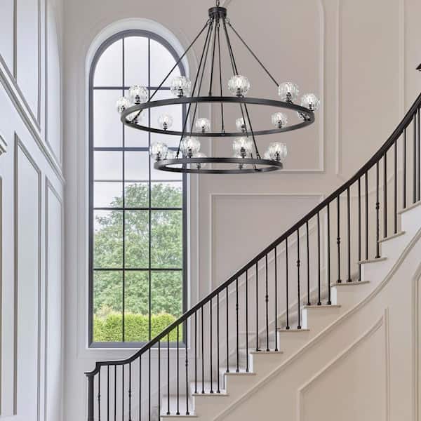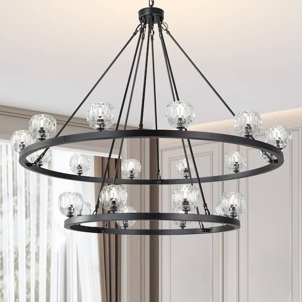 Farmhouse Chandelier 48 in. 30-Light Black Wagon Wheel Chandelier for Dinning Room, Kitchen Island, Foyer, Bedroom
