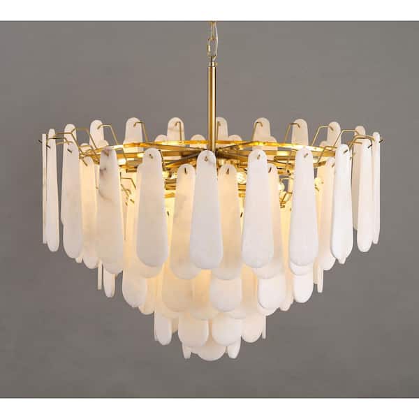 Modern Chandelier 32 in. 16-Lights Gold Chandelier With Alabaster Shade,Chandelier for Dining Room, Living Room, Bedroom