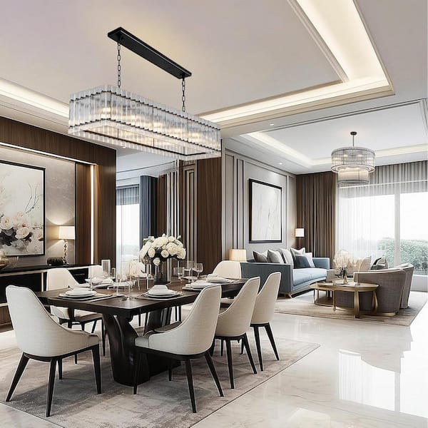 Modern Chandelier 54 in. 10-Lights Luxury Linear Black Chandelier for Dining Room, Kitchen Island, Living Room