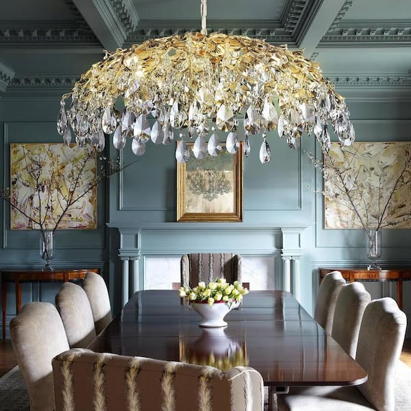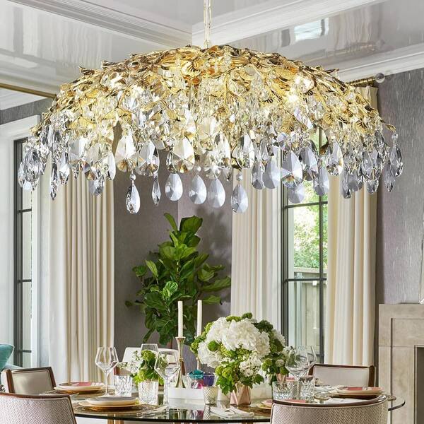 Modern Crystal Chandelier 31.5 in. 10-Light Gold Tree Branch Round Chandelier for Dining Room, Living Room, Entryway