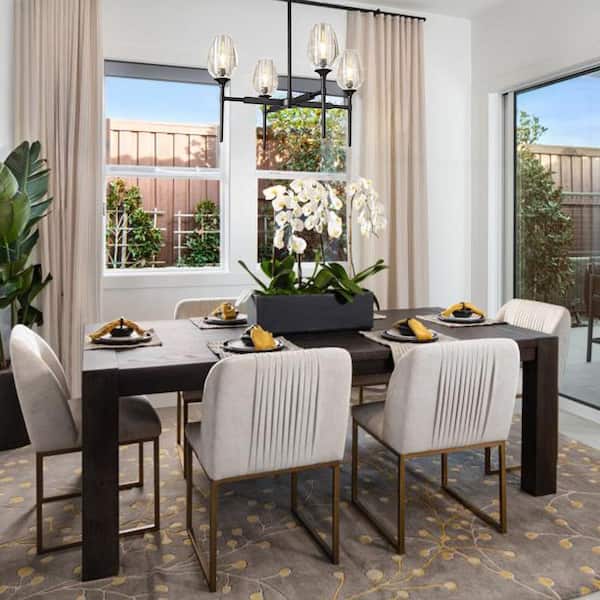 Modern Tulip Chandelier 27 in. 4-Light Black Tulip Round Chandelier for Dining Room, Living Room, Foyer, Hallway