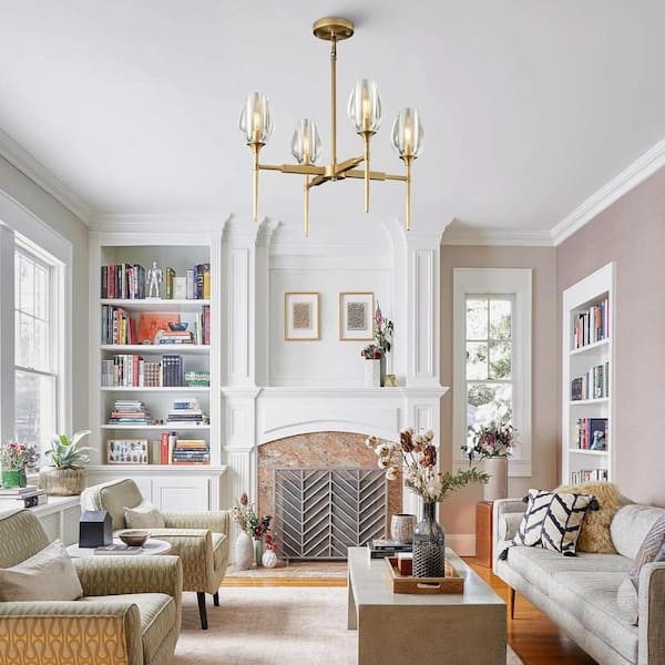 Modern Tulip Chandelier 27 in. 4-Light Gold Tulip Round Chandelier for Dining Room, Living Room, Foyer, Hallway