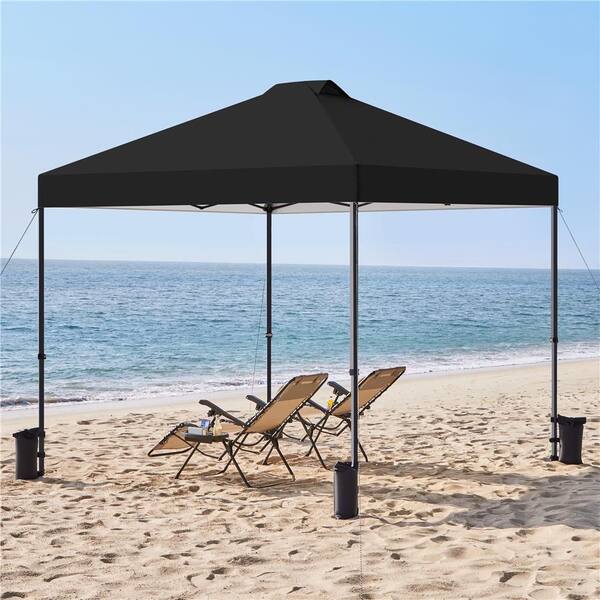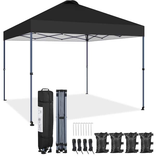 10 x 10 ft. Pop Up Canopy with Setup Mechanism w/ Wheels and CarryBag and Guy Lines and Sandbags and Ground Stakes Black