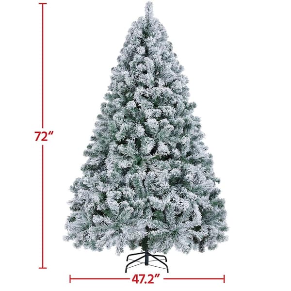 Pre-Lit Flocked Artificial Christmas Tree Hinged Fir Holiday Decorative with Foldable Stand