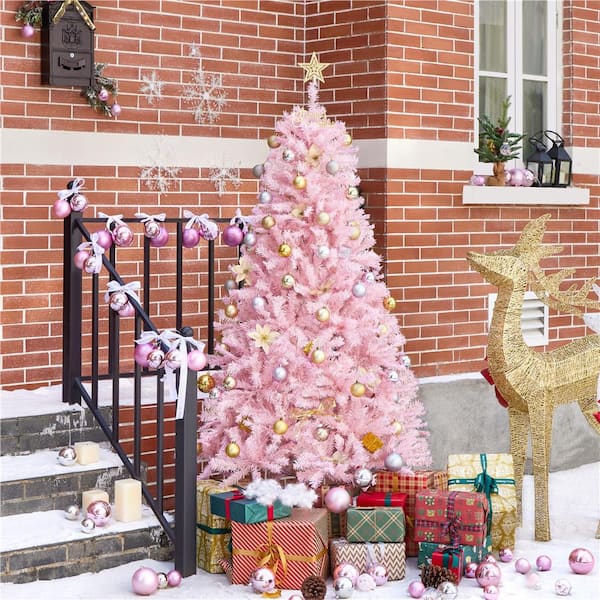 Unlit Hinged Fir Artificial Christmas Tree Lifelike Holiday Decorative Tree with Foldable Stand