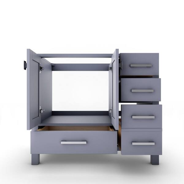 Yamyam 35 in. W x 21.75 in. D x 33 in. H Left Side Basin Bath Vanity Cabinet without Top in Matte Gray with Chrome Trim